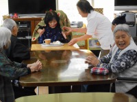 師走に入り慌ただしい中、恒例になった餅つきをしました。22日は参加出来る利用者様と、利用者様のご家族も参加されて盛大な行事となりました。 最近、石臼を使っての、きねつき餅風景はほとんど見かけなくなり、利用者様には懐かしく思い出された事でしょう。(^▽^)