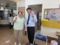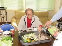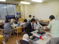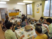 段々と慣れていただいたようで、ホットプレートから直にご自分の食べたい物を取られる方、「ビールも飲めや」と職員にビール(ノンアルコールですが)をすすめ、お酌をしてくださる方、それぞれに楽しまれていました(^▽^)b