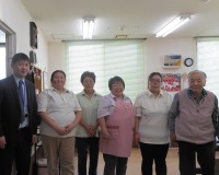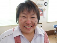 『日頃、化粧気が無い職員をかわいくしよう』とお化粧をしてくれました。ただし二人羽織で!・・・・・笑って頂きましたとも!施設長も快く!?参加してくださり写真のような姿に(≧▽≦) なんと、入居者様のお一人も化粧させてくださいましたd(≧▽≦)b