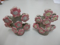 写真は陶芸教室の様子と完成品の兜、先月の陶芸教室で作った桜の木です。