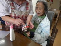 完成後は早速、胸にコサージュを付けてみたり腕にブレスレットを付けられたりと満面の笑みを浮かべておられました。