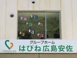 おかげさまで、今月の2階の窓は、鮮やかな鯉のぼりが気持ち良さそうに泳いでいます >゜))彡
