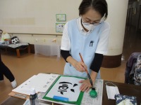 スタッフが先生になり、書道教室を開催しました。