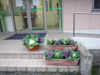 今日から12月、気温も一段と下がり、冬の風物詩の一つ「はぴね広島安佐」の玄関を葉ボタンで飾り付けました。来客される皆様には季節感を感じて頂けるものと思います。
