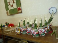 裏の竹林の竹を使ってミニ門松作りを行ないました。竹の器に竹を立て、飾りつけをして完成!!