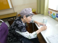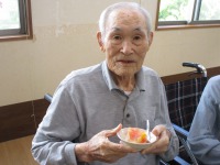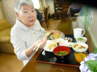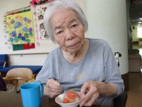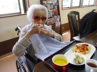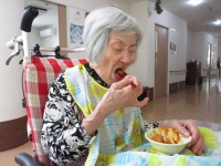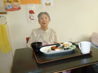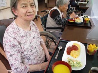いつもの食事には出ないものを食べて頂きたくて、オムライスを作って食べて頂きました。「オムライス食べた事ありますか?」とお聞きすると「まぁ食べたことあるよね!でもいつから食べとらんかわからんよ」との返事。オムライスをお出しすると「まぁ美味しそうなね~すごいね~」と大変喜ばれました。