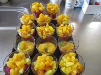 夏を前に入居者様に涼しくて珍しい…それでいて少し豪華なおやつはないかとスタッフで考え今回はフルーツゼリーケーキを作ってみました(^-^)