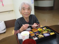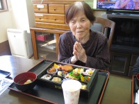 お花見ドライブのあとは施設に戻りお花見弁当を召し上がって頂き無我夢中で食べられました!!