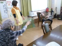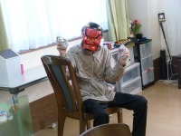 三階では豆撒きを行ないました。男性の利用者様が快く鬼を引き受けて下さり、赤鬼の面をかぶり準備万端、新聞紙を丸めて豆を作り鬼めがけて日頃のうっぷんを晴らさんとばかりに皆様鬼をめがけて力一杯豆を投げつけておられました。👹鬼になられた利用者様もユーモラスに豆を受けておられました。これで少しは日頃のストレスも解消出来たのではないでしょうか?(*^▽^*)
