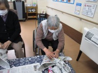 また、ミニ門松作りにも挑戦していただきました。最初は私は難しいので見るだけにしておきますと言われていた方も、いざミニ門松作りが始まると手際よく真剣にミニ門松作りに取り組まれ、写真のような立派な門松が出来ました。