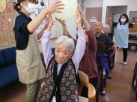 しっかり声を出し体を動かしてリフレッシュして頂きたいという思いを込めて室内で出来るスポーツを考え玉入れと風船リレーをしました。
