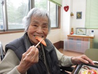 1ヶ月前から計画をしていた紅葉狩りでしたが、残念なことにお天気に恵まれず、ドライブだけをし、はぴねに戻ってお弁当を食べました。担当のスタッフがお弁当の手配をし、デザートをお重につめ、少しでも楽しい時間をと、シャボン玉も準備していたのですが、あいにくの雨‥とても残念でしたが、車の中から紅葉を楽しまれました。