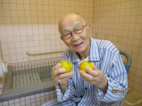 入浴シーンはお見せ出来ないので・・・(笑)入浴前にゆずを持って写真をカシャッ📷