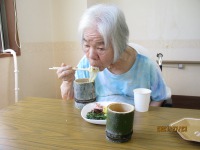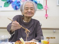7月に入り、七夕飾りを始めました、入居者の方にそれぞれの思いや、お願い事を短冊に書いていただきました。「ビールが飲みたい・・コロナが終息すればいい・・早く外出できるようになりたい、など思いは様々でした、早くお願いが叶いますように。7日の昼食は七夕ソーメンを召し上がっていただき、豪華な食事もいいが、あっさりしたソーメンもいいと好評でした。おやつもあっさりした手作りわらびもちが好評でした。