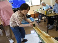猛暑が続く中、少しでも夏らしく涼しい気分になって頂けるようにスタッフにより竹で手作りされた流しそうめん台でそうめん流しを行いました。