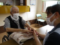 5月26日(水)2階フロアにて「入居者様に癒しを」とアロマオイルを使ってハンドトリートメントをさせて頂きました。昔のお話をして下さる方や「気持ちいいね~」「ちいとシワが伸びたかね(笑)」等々、なかには気持ちよさそうにウトウトされる方も♡ 皆さま肌の血色も良くなりリラックスしていただけました(^0^)