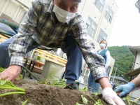 梅雨の晴れ間、はぴねの畑にさつま芋の苗を植えました。毎年11月には焼き芋会を開催しています。コロナの影響で全体での行事とはいきませんが、各フロアごとに大きなさつま芋を収穫し、焼き芋をして食べるのが今から楽しみです! 花の苗も植え、色とりどりの花を咲かせることでしょう❤