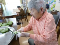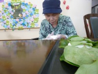 また、はぴね広島安佐恒例の柏餅作りにも挑戦して頂き、近くの山で山帰来(サンキライ)の材料を調達し季節感を味わって頂きました。