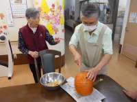 10月31日、ハロウインコンテストを開催しました。事前に利用者様と一緒にカボチャの工作をしました。