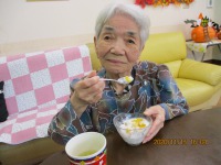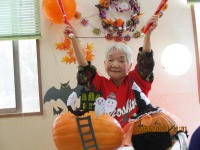 当日は、利用者様とスタッフで仮装しました。利用者の皆様には、馴染みのないハロウインですが、快く仮装