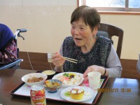 鶏肉の照り焼き、野菜の煮物、茶わん蒸し、プチパンケーキ、盛りだくさんのお膳になりました。