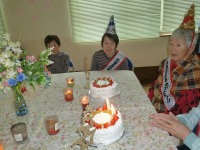 2月27日、はぴね2階フロアーにて2月3日生まれの方の合同お誕生日会をしました。スタッフ手作りのケーキを召し上がっていただき、スタッフによる三味線やハンドベルの生演奏を楽しんでいただきました。歌あり笑い声あり楽しく和やかな時間を過ごしていただきました。♪~