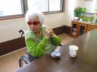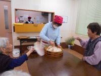 ちらし寿司や茶わん蒸しを昼食にお出しし、スタッフも一緒に頂き「まあ!茶碗蒸し⁈珍しいね」「美味しいね」と大変喜ばれました。