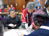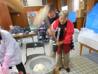 28日には今年の締めくくりの行事で餅つきのお手伝いをして頂き、春先に摘み取った、よもぎ餅に手際良くあんこを包み込まれていました。「早くせんと固まるよ」・・・と言ってお叱りを被りながらの慌ただしい一時の中にも、石臼を使っての餅つき風景にはきっと昔懐かしく感じられたことと思います。