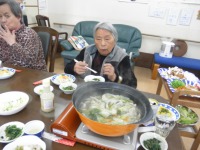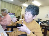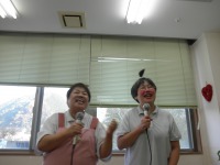 「おいしいねぇ、盆と正月が一緒に来たような」と大変喜ばれました。食事会の後はスタッフによる出し物?!皆さん大笑いでした。また、ホーム長の歌やスタッフによるオカリナ演奏、カラオケ等がありました。楽しい時間はあっという間に過ぎ、皆さんの笑顔で今年一年を締めくくることができました。