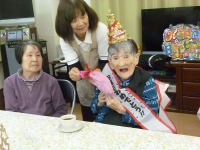 24日、25日は各フロアーでクリスマス会を行い、サンタに扮したスタッフから、心のこもったプレゼントに感激されました、また手作りのケーキも「美味しい」と言って喜んで頂きました。(^_-)-☆