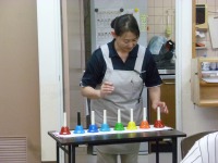 一月のお誕生日会を開催しました。該当される方はお一人でしたが、3ユニットの交流行事の一環として、他のフロアーで翌月のお誕生日をお迎えされる方にも参加して頂きました。先ずはスタッフのハンドベル演奏によるバースデ-ソングで会場はお祝いの雰囲気に染まり、手作りケーキに舌つづみを打ちながら(^_-)-☆ スタッフのギーター演奏・津軽三味線やフォークソングの合唱など、短時間でしたが有意義な会となりました。