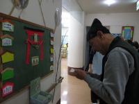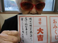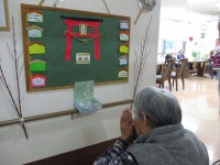 1Fフロアではスタッフ手作りの「はぴね神社」に入居者様それぞれに書いていただいた絵馬を奉納し、手を合わせた後、おみくじを引いて頂きました。「やったよ!大吉!!」と大喜びの入居者様。今年一年元気に笑顔で過ごせることを皆で祈りました。また書き初めにも挑戦です。一生懸命に取り組まれている姿に感動です。