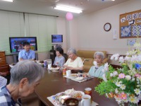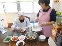 先日、2階でお食事会を開催しました。皆様に希望をお聞きし、今回はお寿司となりました。にぎり寿司や、巻き寿司など、ご自分の食べたいお寿司を選ばれ、スタッフ手作りの煮物やデザートの梨まで、皆様「おいしい」と食べられ、笑顔あふれる一時となりました。