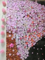 今年の桜は花びらを折り紙で一枚一枚作成し、花びらを重ねる事で壮大感を出しました。
