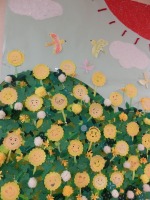 毛糸で作った立体的なものや色んな表情のついたもの、それぞれ得意なパーツを分担して仕上げました。