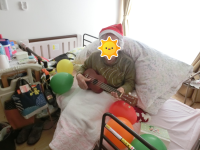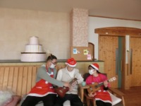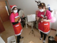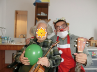 クリスマスにはウクレレ音楽隊がサンタに扮装して、各居室を訪ねてくれました。
