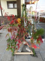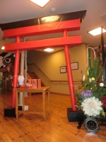 はぴね防府の今年のお正月は、玄関前のお飾り・玄関フロアに門松や鳥居、鬼揚子(おにようず)の巨大凧、ウサギの形の絵馬を飾り、お正月を感じていただこうと設置いたしました。