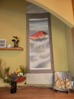 初日の出を作成するにあたり、背景を決める段階でご利用者様から一番人気が高かった富士山に決定。模造紙2枚別々に作成するので、完成し張り合わせた時には「やっぱり富士山は大きいのが迫力あっていいね」と納得された様子で見られてました。