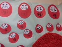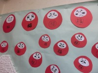 富士山の上には、それぞれが書いた「だるま」が並んでいます。顔の表情も個性が出てみんな違ってみんな良い。