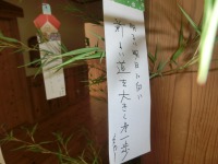 七夕・・・天の川に笹の葉をはわせ、みんなで願い事を書きました。
