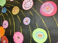 花火・・・夜空に打ちあがった花火をイメージし、ご利用者様に色んな花火を切り貼りし作成していただきました。
