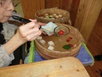 金魚・・・少しでも涼しい雰囲気を作ろうと、天井近くの壁上面に水槽の中で泳ぐ金魚を作成。