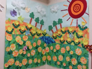 お花畑は、折り紙で蝶々を作る事や、バランスよく貼るのが難しく苦労しました。