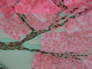 桜の花は、最初に木の枝を作り1分咲きから満開まで楽しみながら作品作りができました。