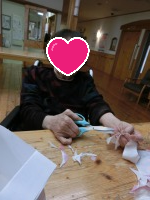 お雛祭りに向けて、入居者様と一緒に【さげもん】を作りました。