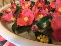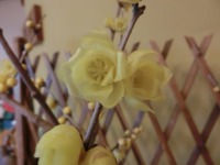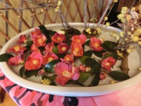入居者ご家族様が自宅で育てた蠟梅(ロウバイ)と椿の花を持って来て下さいました。