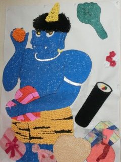 鬼の手や周りには、旬の食材やバレンタインのプレゼントを飾りました。