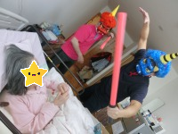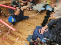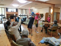 鬼めがけて豆に見立てた、綿ボールを精一杯投げました。