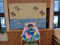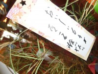 玄関に大きな笹をセットして、みんなで書いた短冊を飾りました。