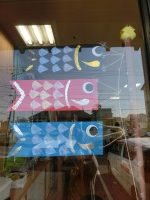 はぴねのデイサービスは、女性の方が多いので赤い鯉のぼりを大きく作りました。